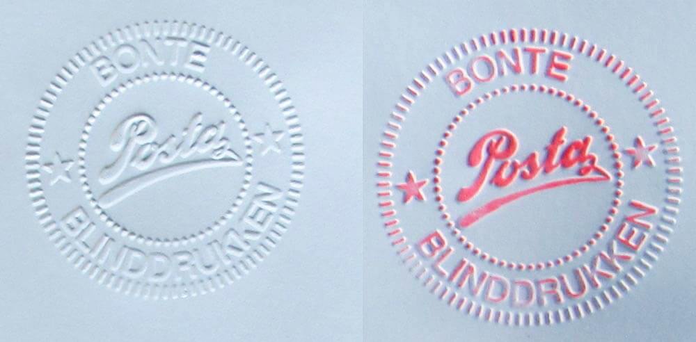 Werkwijze: Maak eerst een preegafdruk in het papier, daarna de afdruk tamponeren met de preegbeïnkter.