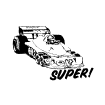 Schoolstempel Raceauto Super!, afdruk ca 30x30 mm.
