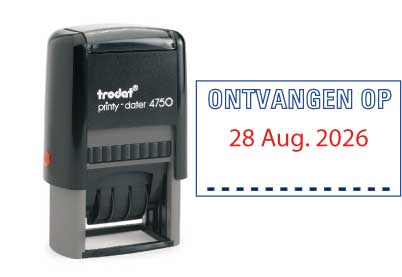 Zelfinktend stempel met standaard tekstplaat en de datum.