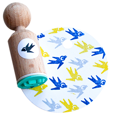 Rubberen stempel op houten montuur. Afdrukafmeting: ongeveer 13,5x10mm.