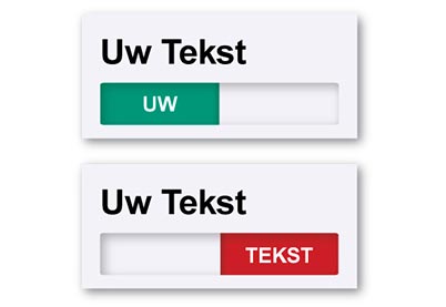 Verschuifbaar tekstvlak: witte tekst op groene of rode ondergrond.