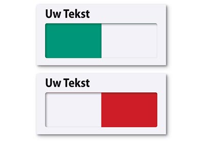 Verschuifbaar tekstvlak: blanco vlakken op groene of rode ondergrond.