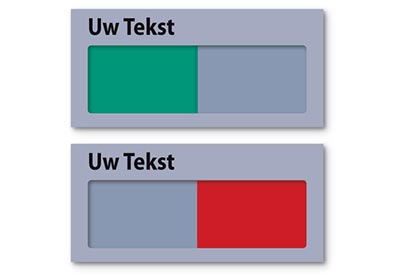 Verschuifbaar tekstvlak: witte tekst op groene of rode ondergrond.