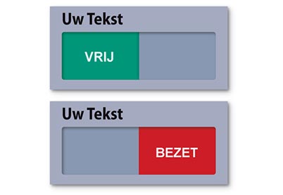 Degelijk en mooi kunststof schuifbordje met eigen tekst en VRIJ - BEZET