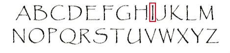 Afdruk van een: I, Klassieke Letter van het alfabet, afmeting 18 mm in diameter.