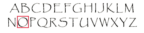 Afdruk van een: O, Klassieke Letter van het alfabet, afmeting 18 mm in diameter.