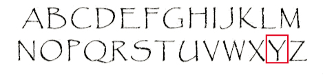 Afdruk van een: Y, Klassieke Letter van het alfabet, afmeting 18 mm in diameter.