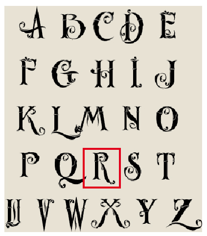 Een lakstempel met een handvat in de vorm van een uil. Afdruk van een sierlijke letter: R, afmetingen 18 mm in diameter.