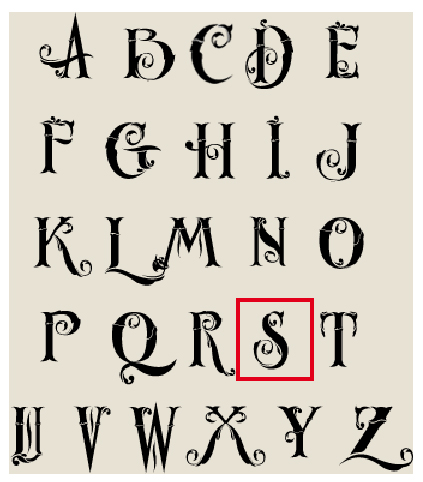 Een lakstempel met een handvat in de vorm van een uil. Afdruk van een sierlijke letter: S, afmetingen 18 mm in diameter.