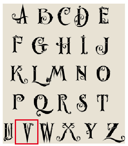 Alfabet Lakstempel Sierlijke Letter: V
