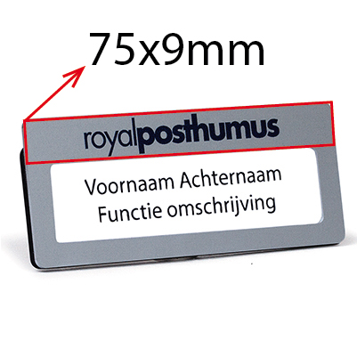 • De badges zijn uitgevoerd in Aluminium met de afmetingen 75x30mm.