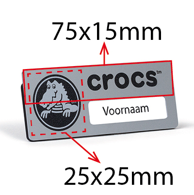 • De badges zijn uitgevoerd in Aluminium met de afmetingen 75x30mm.