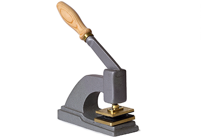 Grijze gietijzeren blinddrukpers, voorzien van uw eigen logo, wapen(2d) of afbeelding.