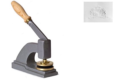 Grijze gietijzeren blinddrukpers, voorzien van uw eigen logo, wapen(2d) of afbeelding.