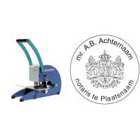Blinddruk op grotere schaal kan machinaal worden gemaakt met de blinddrukpers. De blinddrukstempels uit deze categorie zijn geschikt voor papier van 80 tot 300 gram/cm2. Het bereik van onze tafelpersen varieert van 5 tot 10 cm. Bij Stempels.nl kunt u ook kiezen voor luxe tafelpersen. Deze klassieke, statige tafelpersen zijn een sieraad op ieder bureau.