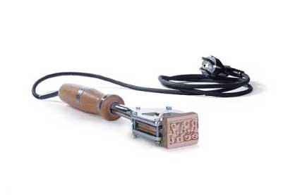 Elektrische ALK-brandstempel 45x40 mm met gravure, voor het onuitwisbaar brandmerken van bijvoorbeeld hout, leer en kunststof.