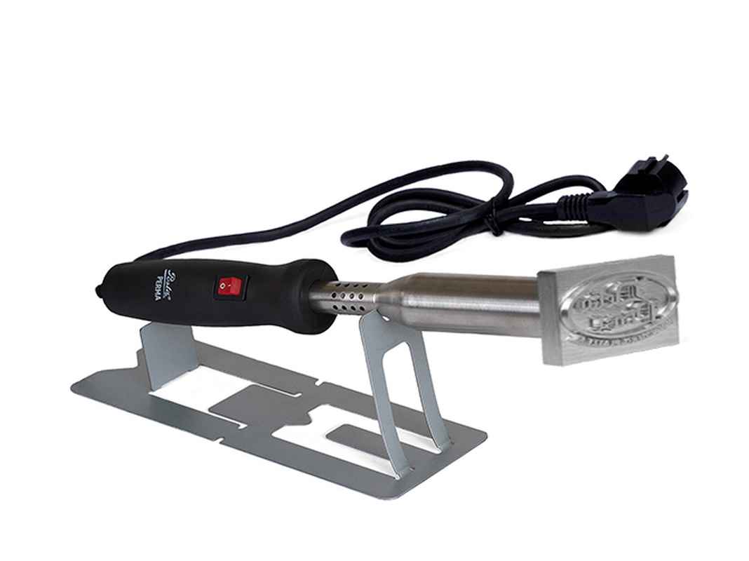 Elektrische brandstempel Posta Perma van roestvrij staal met gravure 60x40 mm, voor het onuitwisbaar brandmerken van bijvoorbeeld hout, leer en kunststof.