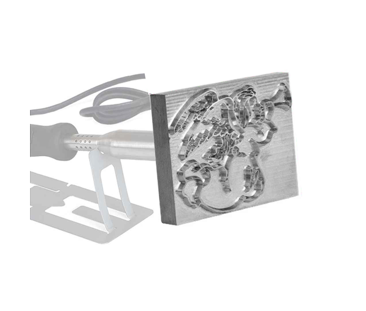 Een brandstempel is een stempel uitgerust met een metalen verwarmingselement. Op dit verwarmingselement kan een inzetstuk worden geplaatst, waarop de gewenste tekst of afbeelding is gegraveerd. Wij bieden u de mogelijkheid om uw eigen stempel samen te stellen. Gebruik onze stempelcreator om zelf de vorm, grootte, temperatuur en het ontwerp uit te kiezen en laat ons de perfecte brandstempel voor u maken.