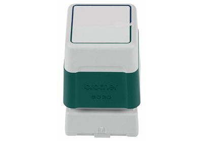 De Brother PR-3030E is een groene blanco zelfinktende stempel, die snel en gemakkelijk gepersonaliseerd kan worden met de Brother Stamp Creator Pro.