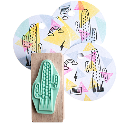 Rubberen stempel op houten montuur. Afdrukafmeting: 28x47 mm.