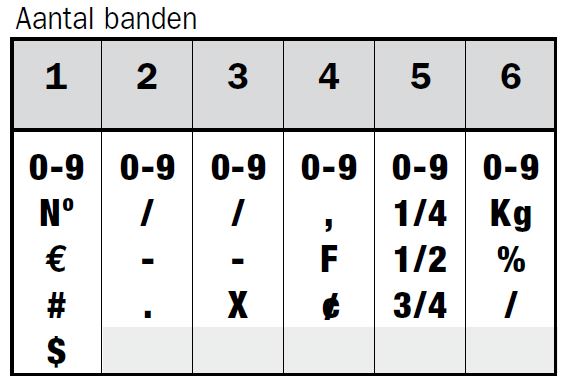 De cijferbanden bestaan niet alleen uit cijfers, maar zijn aangevuld met tekens! b.v.; /, -, .
