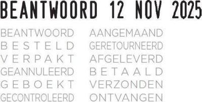 Bestel de stempel voor 12:00, dan wordt deze dezelfde werkdag verzonden.
