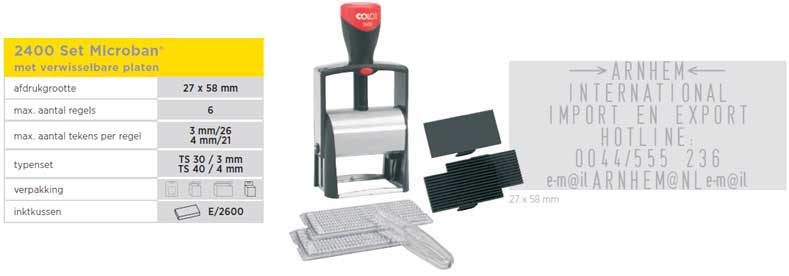 De Colop 2400 Set doe-Het-Zelf stempel combineert de voordelen van functionele zelfinktende stempels met de mogelijkheid om deze zelf in te stellen en voor het maken van een afzonderlijk bericht.