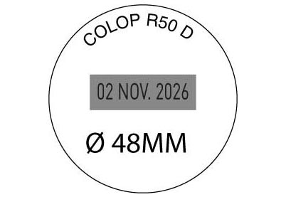 Stempel Colop Printer R50D is zelfinktend en heeft een afdrukformaat van Ø 48 mm. Gebruik stempel onder andere als bedrijfsstempel, logostempel of tekststempel. Het ingebouwde zwarte stempelkussentje is goed voor duizenden afdrukken. De inkt is op waterbasis en is geschikt voor op (niet glad) papier.