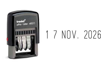 Handzaam stempel. Speciaal geschikt voor gebruikt op RDW documenten. De afdruk van het stempel bestaat uit: een dagaanduiding van twee posities, een maandaanduiding van drie posities en een jaaraanduiding van vier posities. Licht van gewicht. De datumbanden zijn makkelijk te verdraaien. Standaard geleverd met zwart inktkussentje.