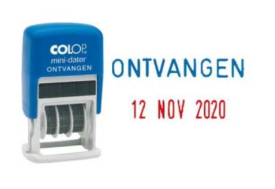 De afdruk van het stempel bestaat uit: de tekst ONTVANGEN met daaronder de datum een dagaanduiding van twee posities, een maandaanduiding van drie posities en een jaaraanduiding van vier posities.
