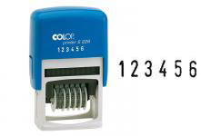 Zelfinktende cijferstempel. De cijferbanden zijn gemakkelijk te verdraaien d.mv. de verstelwielen.
