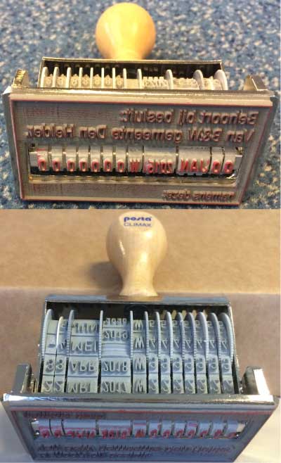 Datum/cijferstempel op aanvraag op maat gemaakt volgens uw wensen.