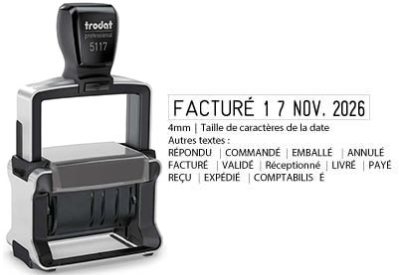 TRODAT 5117 FRANS woord/datum 12 vaste teksten