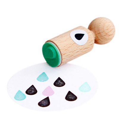 Rubberen stempel op houten montuur. Afdrukafmeting: ongeveer 6,5x10,5mm.