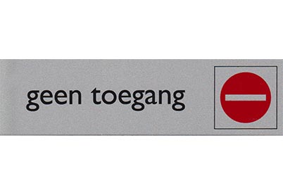 Tekstbordjes, bedrukt met standaard tekst en bijbehorend pictogram ineen, voor binnen en buiten gebruik.
