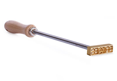 Handbrandstempels kunt u verhitten in bijvoorbeeld een gasvlam. (fornuis)