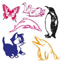 Deze nostalgische stempels zijn op vele manieren te gebruiken. U kunt er tekeningen mee maken door te combineren en bij te tekenen. U kunt kleur in de afdruk brengen door stempelkussens met verschillende kleuren te gebruiken, of door met een viltstift de stempelplaat stukje-voor-stukje met de hand in te kleuren.