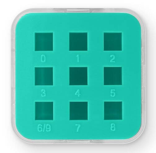 De vakjes zijn gemarkeerd met de cijfers 0 t/m 8 ( de 6 gebruikt u omgekeerd als 9 )