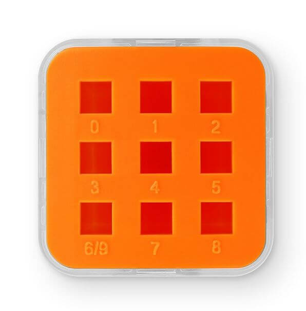 De vakjes zijn gemarkeerd met de cijfers 0 t/m 8 ( de 6 gebruikt u omgekeerd als 9 )