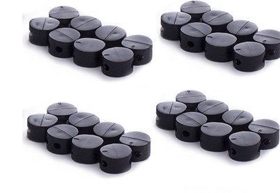 Ca 200 loodjes van kunststof van 9 mm in het zwart.