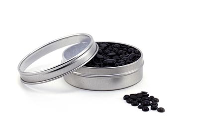 Blikje lakkorrels, kleur: zwart
