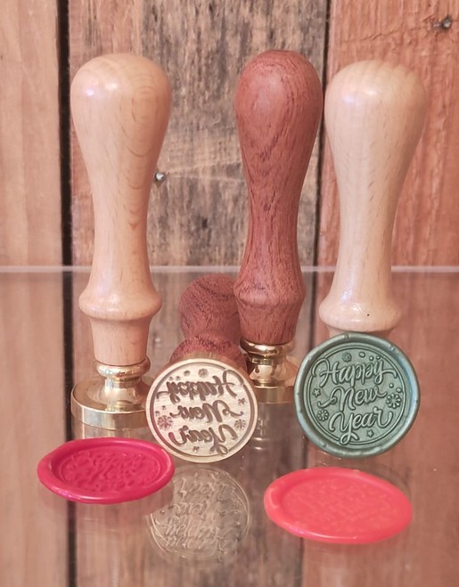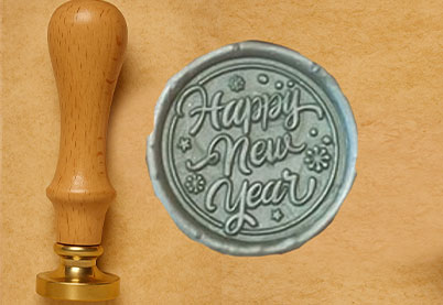 Lakstempel Ø25mm Happy New Year | lichtbruin handvat