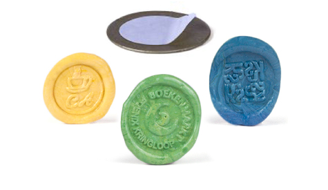 De lakzegels zijn aan de achterzijde voorzien van een zelfklevende laag.