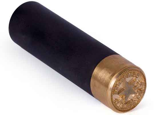 Leerstempel rond 30 mm logo op maat gemaakt van Posta.