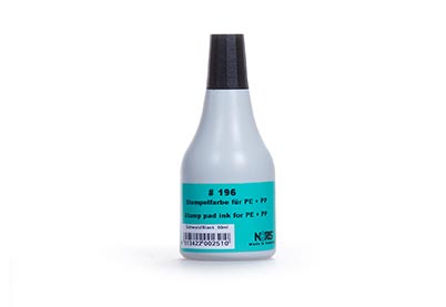 Deze inkt kunt u druppelen op een ongedrenkt (niet-beïnkt) stempelkussen. Geschikt voor o.a. kunststof (PE, PP, PA, PVS, SAN), glas, rubber.