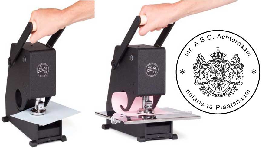 Notarispers Posta JHP Ø40 mm rond geschikt tot 350 grams papier, voorzien van uw eigen notarisgravure.