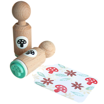 Rubberen stempel op houten montuur. Afdrukafmeting: 10,5x10mm.