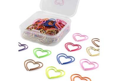 De paperclips zijn vormgegeven in een 'hart', waarmee enkele velletjes papier bijeen gehouden kunnen worden zonder het papier te beschadigen.