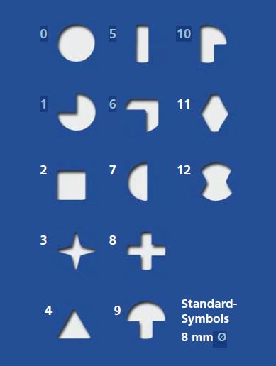 U heeft de keuze uit diverse standaardsymbolen 0 t/m 12 van 8 mm, zie onderstaande afbeelding: