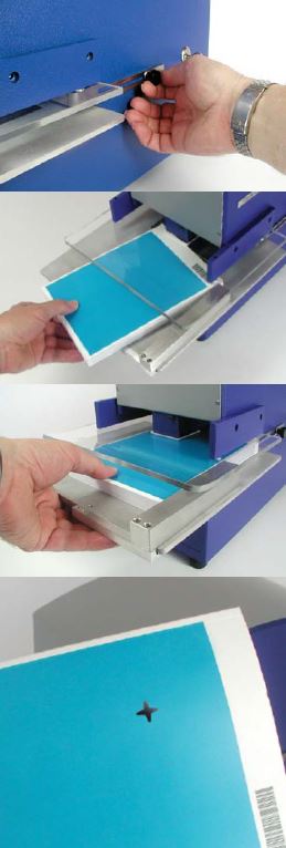 De Pernuma Perfoset EX/L is voorzien van verstelbare stoppen aan de zijkant en achterkant, zodat u elke keer op precies dezelfde plek kunt ponsen.